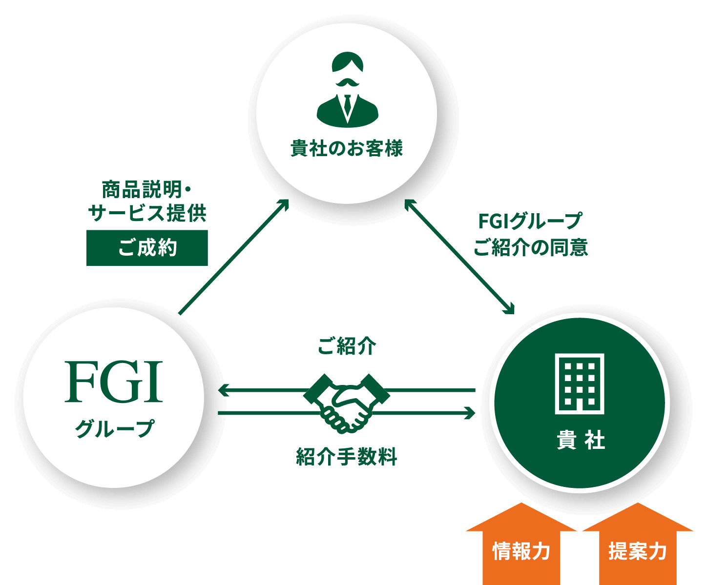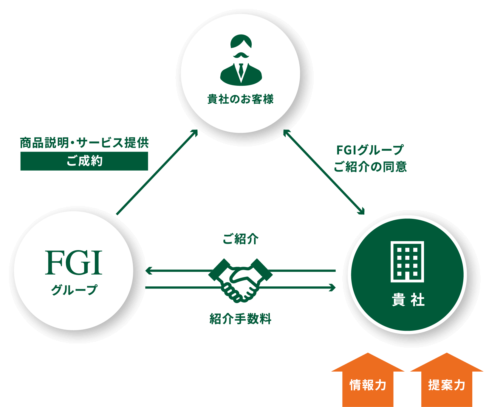 FGIグループが取り扱う各種サービスに関心のある貴社のお客様を当社にご紹介いただくと、専任担当者がお客様の課題解決に向け全力で支援を行います。